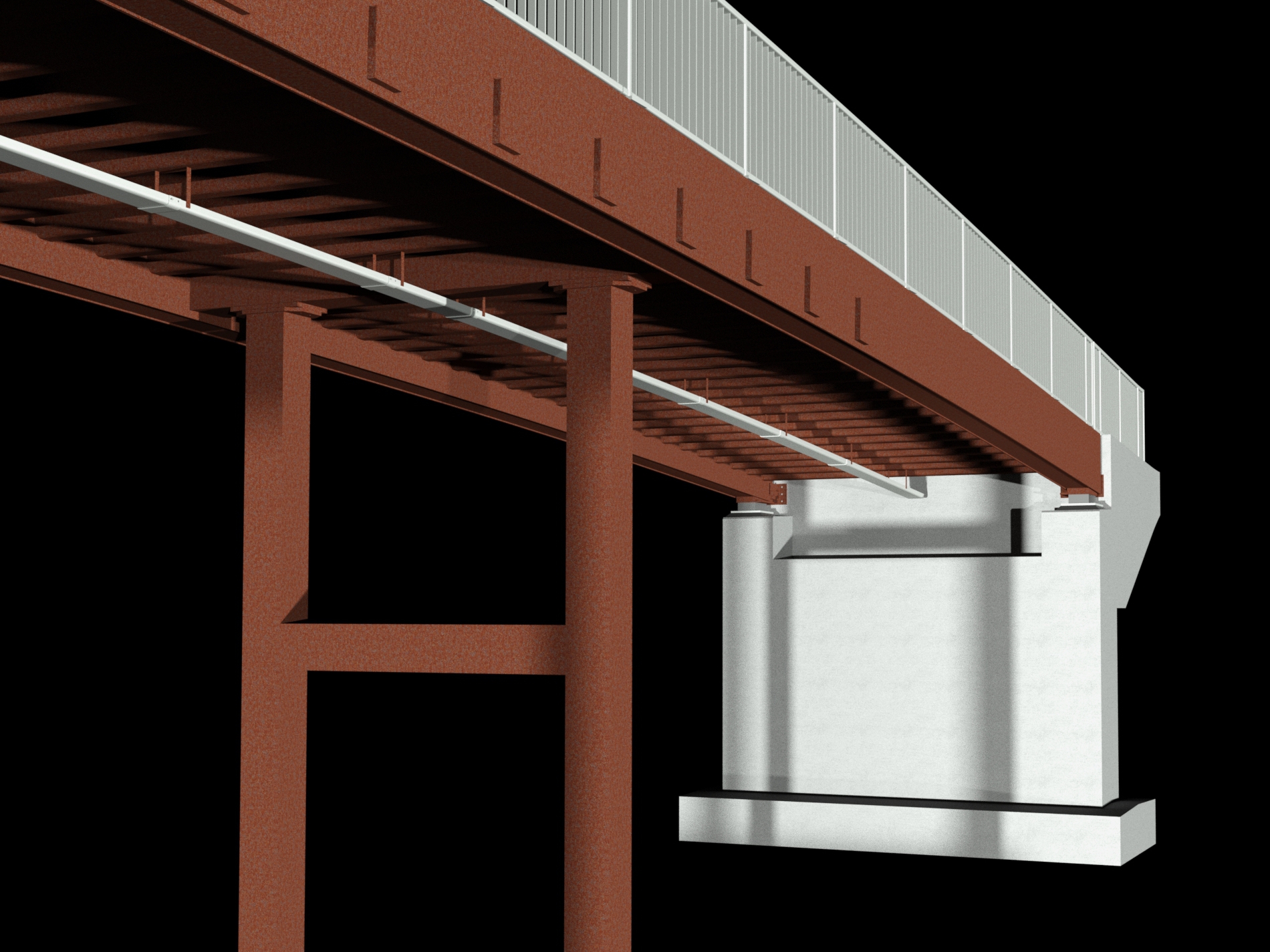 Projekty warsztatowe wytworzenia konstrukcji stalowych sześciu wiaduktów pieszo-jezdnych nad linią kolejową Aarhus-Lindholm, realizowanych w ramach zadania inwestycyjnego: "Bropakke 2 - Six railway bridges over line Aarhus-Lindholm, Denmark". Konstrukcje nośne wiaduktów ze stali trudnordzewiejącej typu Corten w gat. S355J2W+N. Ustrój nośny w formie belki ciągłej trójprzęsłowej o długości teoretycznej: 10,15m+15,50m+10,15m=35,80m oraz szerokości użytkowej pomostów: 3,60m. Geometria w profilu: łuk pionowy R=250m i R=350m oraz proste o nachyleniach 60‰ i 75‰. Konstrukcje wiaduktów zamodelowano z uwzględnieniem podniesień wykonawczych dla przęseł środkowych, o wartości +15mm.
